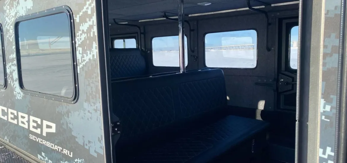 Настоящий водный автобус. Вместительный салон делает аэролодку идеальным выбором для комфортной и безопасной перевозки пассажиров по воде и льду.